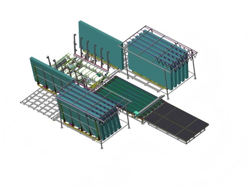 The sorting system is used for glass storage and sorting before edging line,tempering furnace,IG line and laminated line.To make more reasonable,energy saving and high efficient production line.