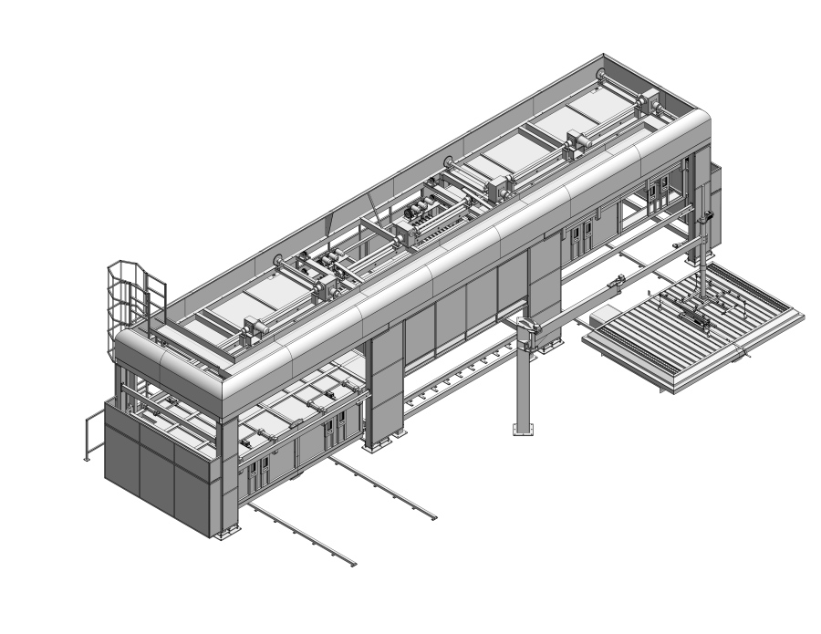 在線理片系統(tǒng)用于磨邊前,鋼化前,中空前和夾膠前玻璃儲存和分揀。讓產線更合理,更節(jié)能,更高效。
