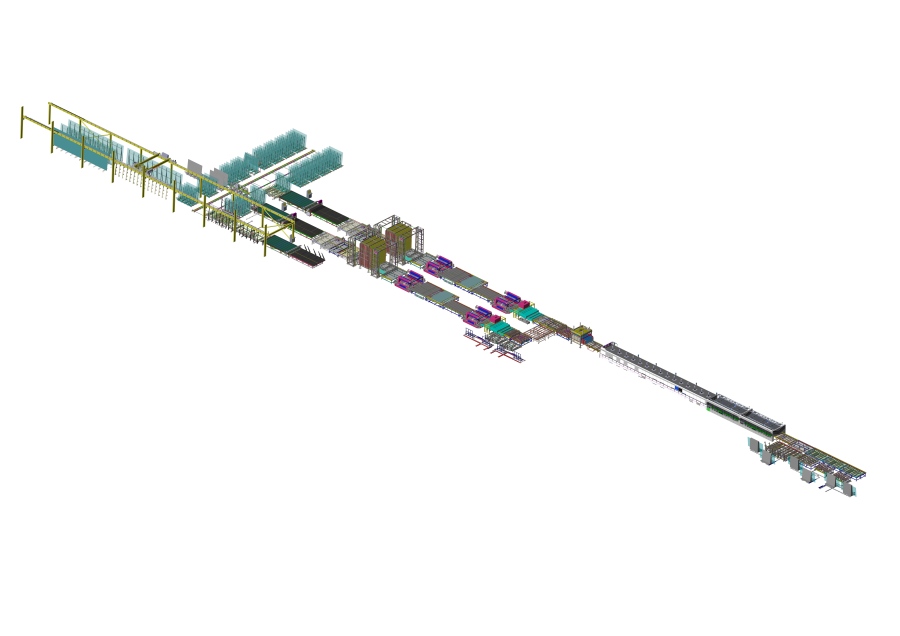 在線理片系統(tǒng)用于磨邊前,鋼化前,中空前和夾膠前玻璃儲(chǔ)存和分揀。讓產(chǎn)線更合理,更節(jié)能,更高效。